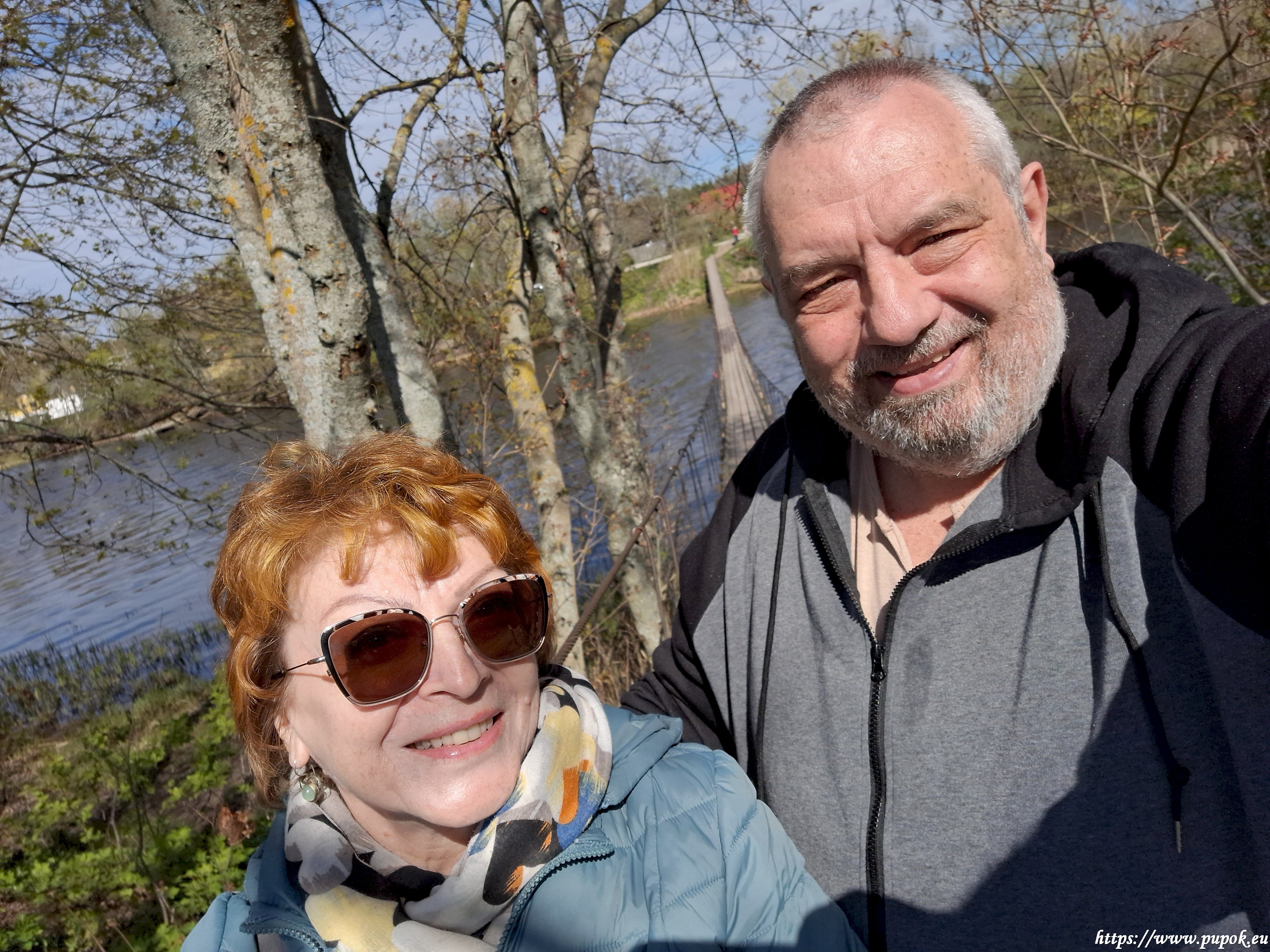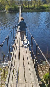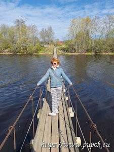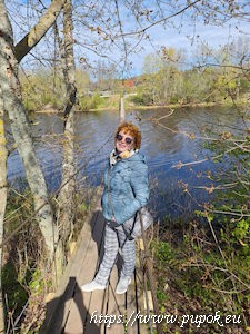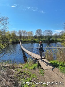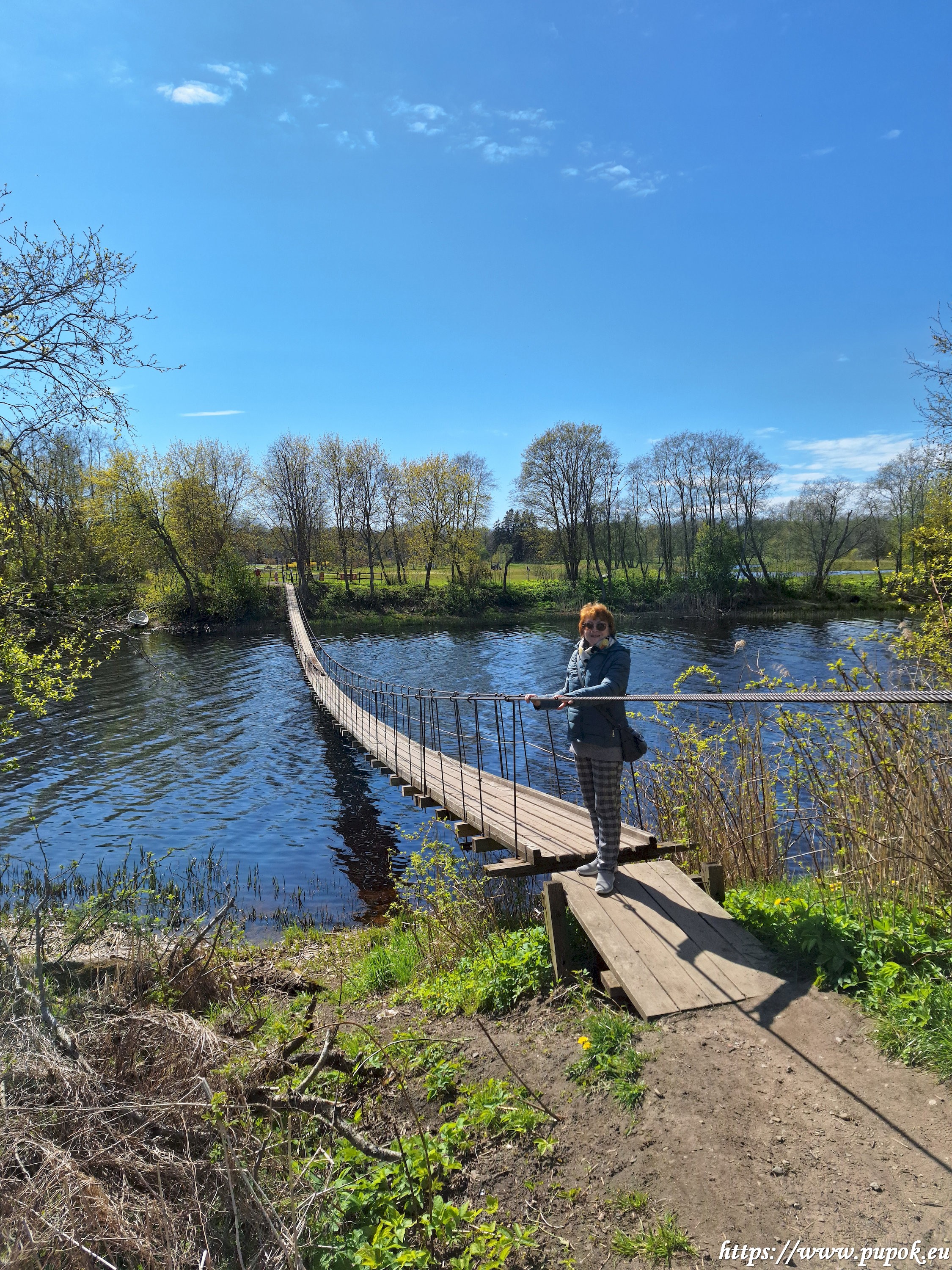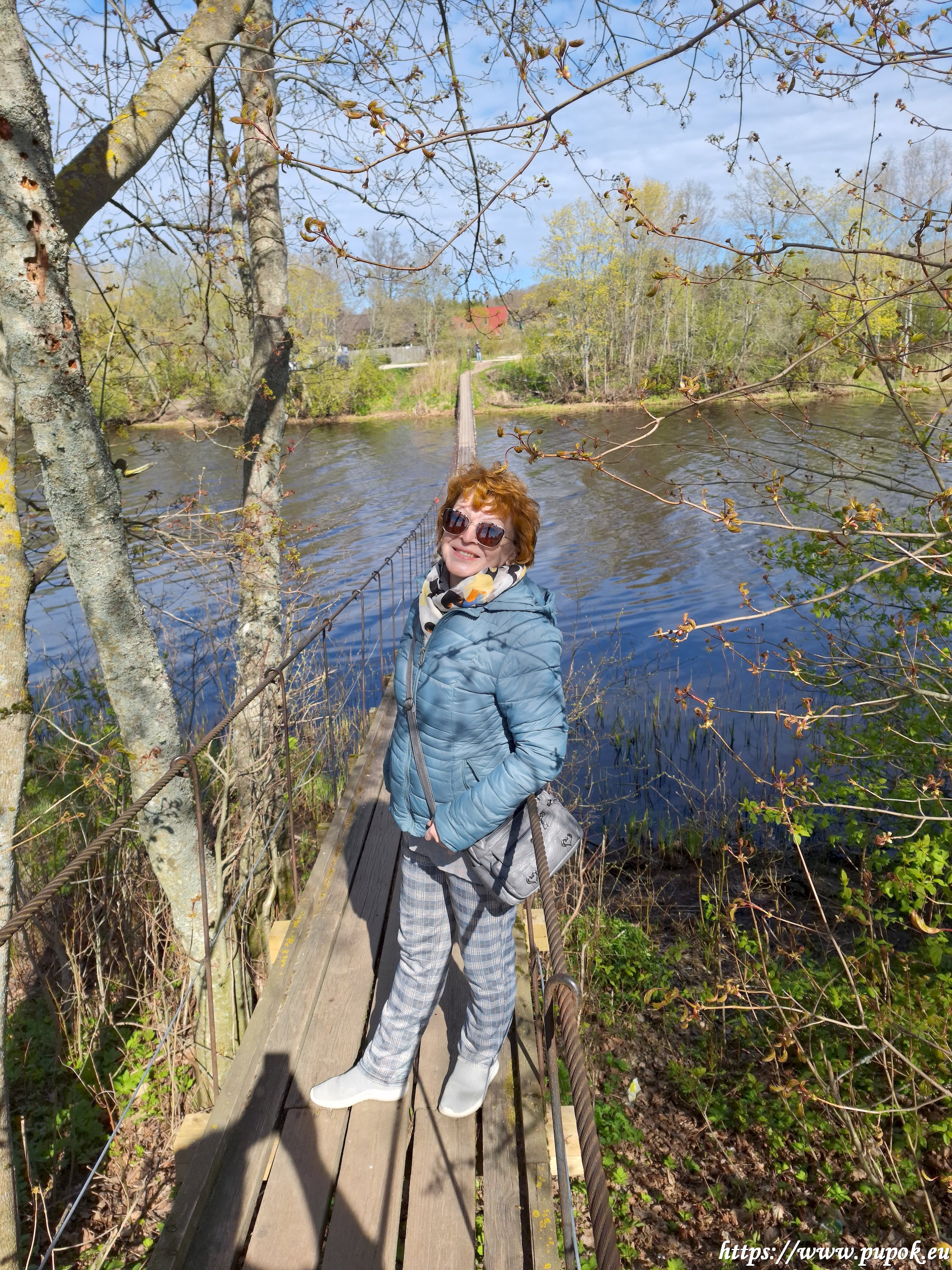 А это мы добрались до висячего (подвесного?) моста в Ягала — Jägala rippsild. Наc, конечно, не 5 человек … но я точно потяну за двоих. Мост так хитро закреплен, что его середина под весом людей активно шлепает по поверхности воды.