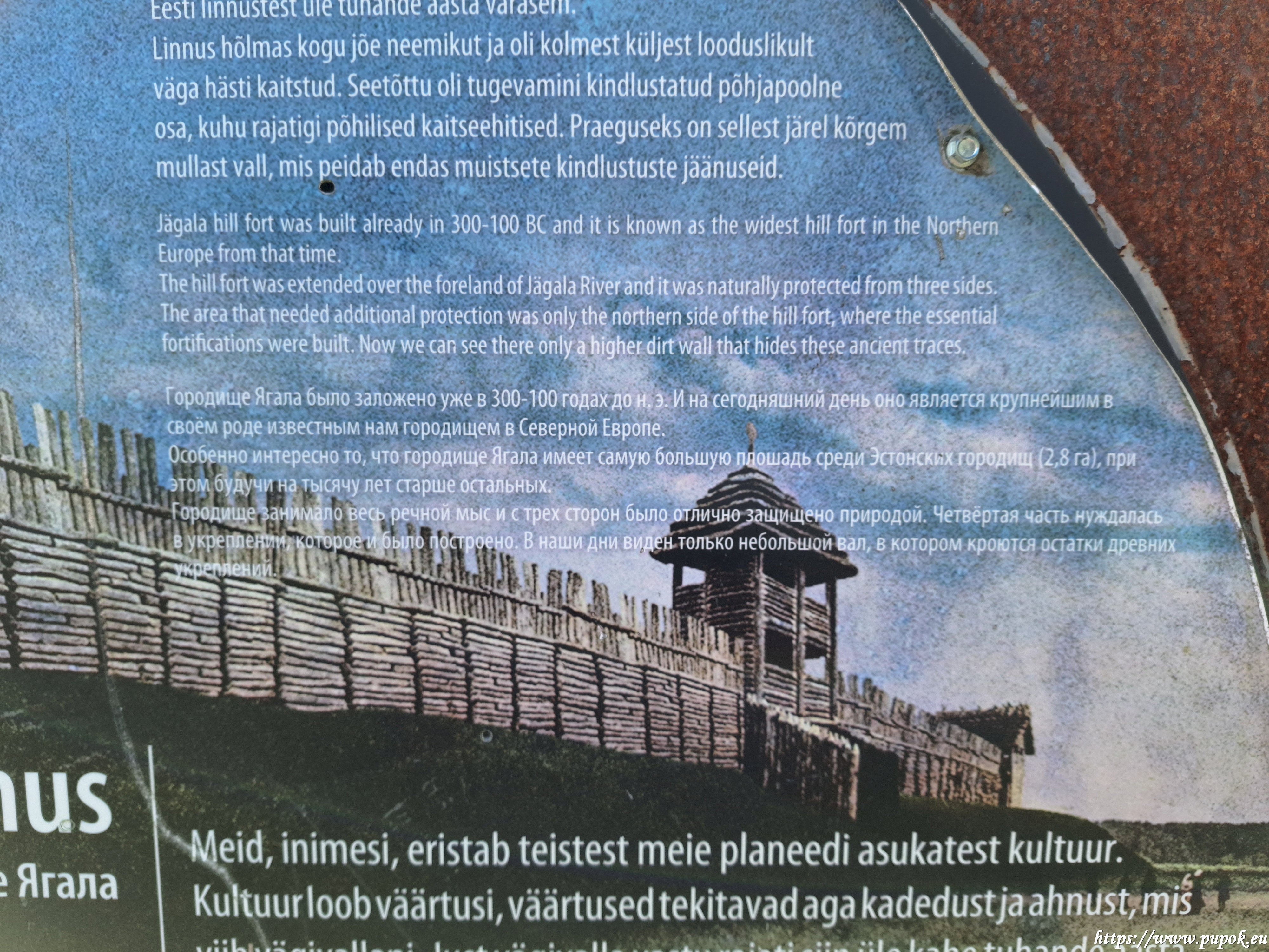 Ну, и рядышком — Городище Ягала (Jägala Jõesuu linnamägi). Не знал, но, если верить надписи — городище (крепость) Ягала было «одной из крупнейших крепостей в Северной Европе за несколько столетий до нашей эры. Площадь двора крепости составляла 2,7 га.