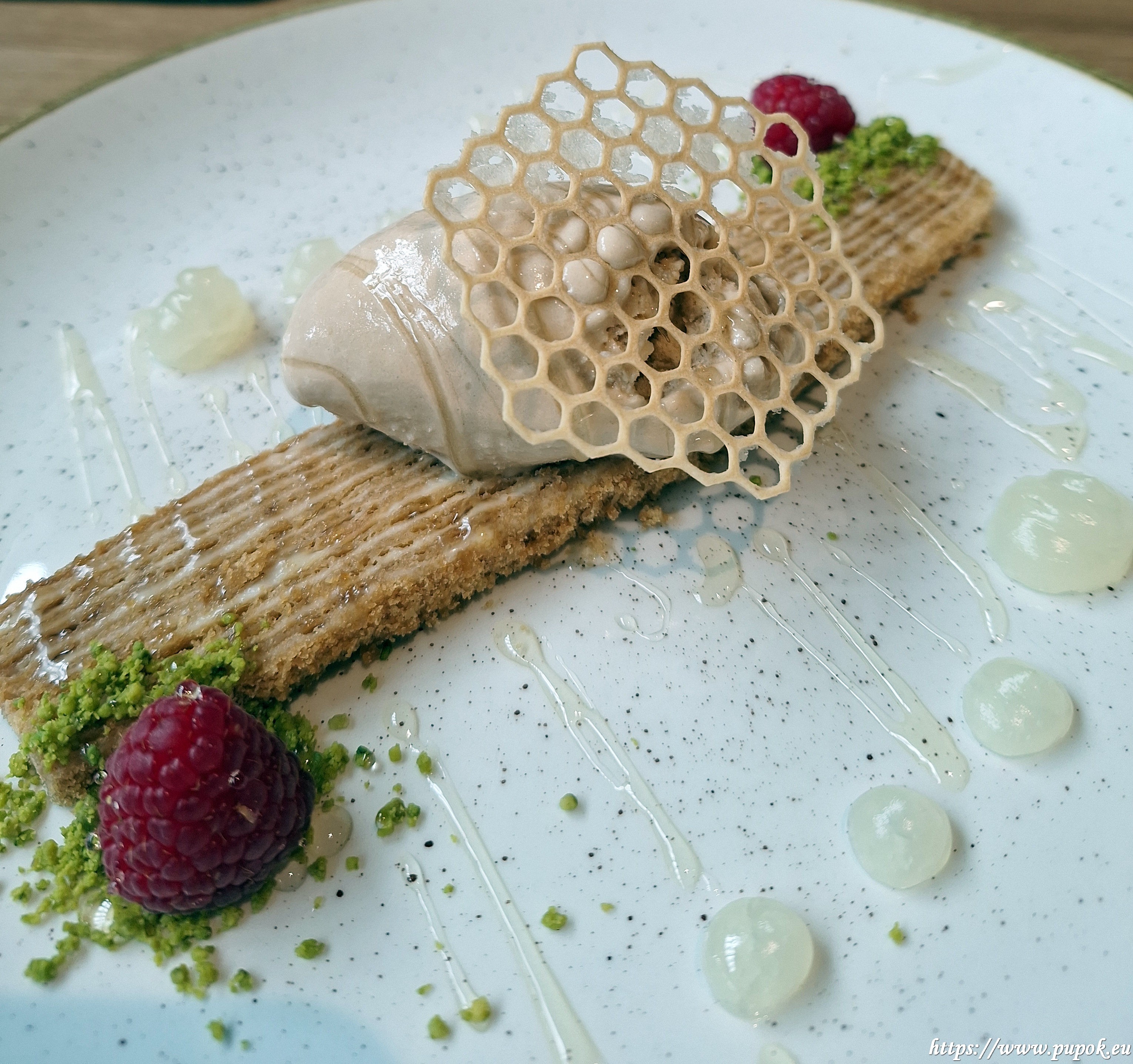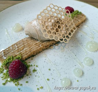 а также Медовый торт (ореховое мороженое, лимонный гель) и горячий коктейль Spicy Mango (текила, апельсиновый сок, сироп, соус табаско, чили)
