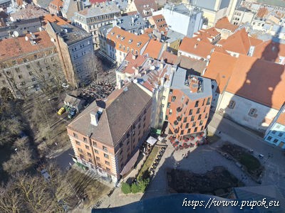 Наш путь ведет в ресторан, но пока еще рано, да и десерт позволил еще погулять по городу. В итоге мы сделали то, что до сих пор не делали никогда в жизни: мы не только посмотрели снизу на Церковь Святого Петра, но и поднялись на смотровую площадку. Ура, там есть лифт. Увы — только с третьего этажа.