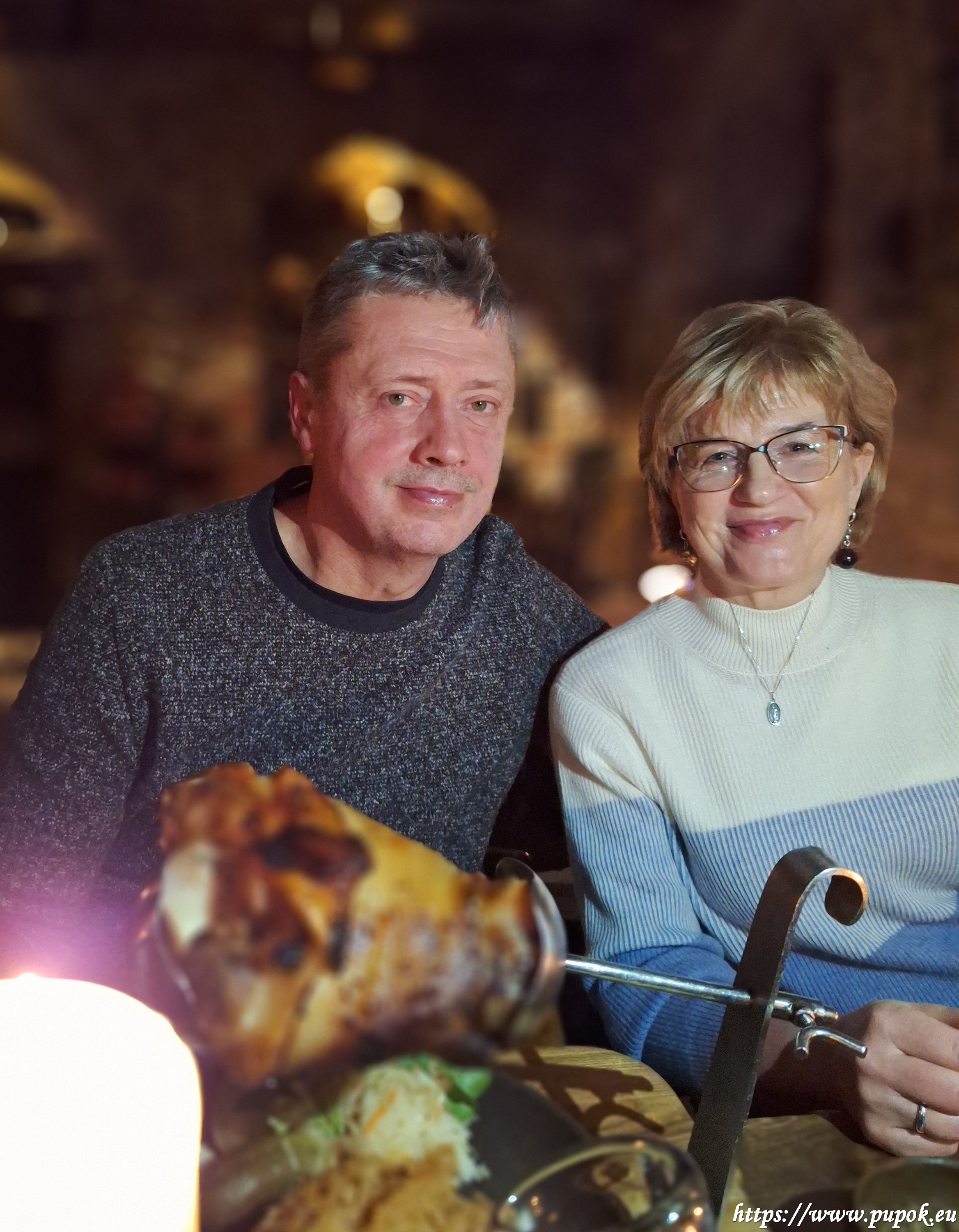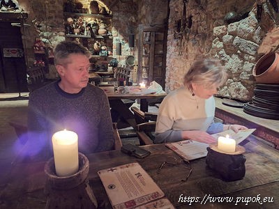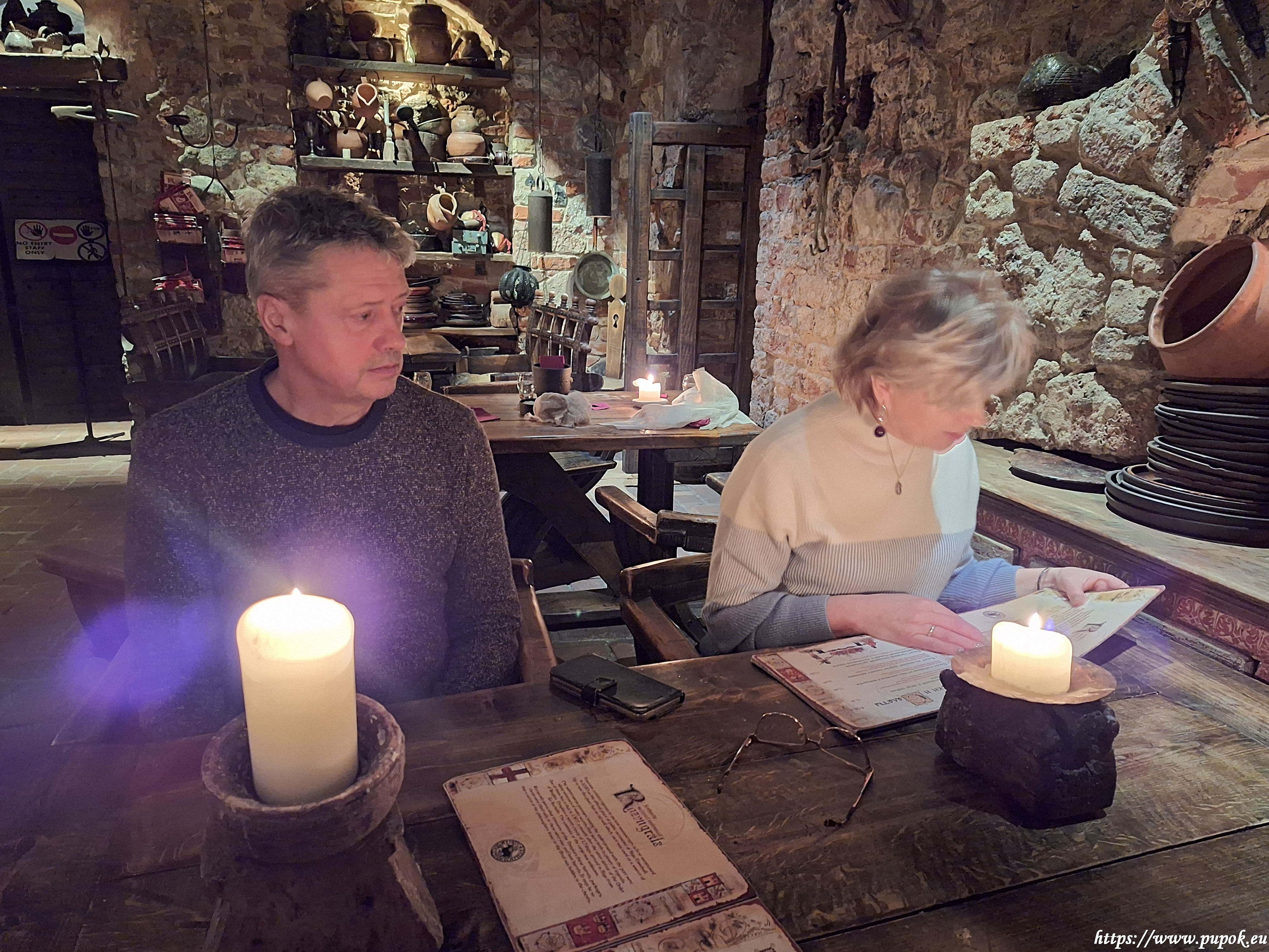 Любезный официант, втюхавший нам 500 мл самогона (а все начиналось с предложения 50 мл для пробы), довольный фотографировал нас при свете свечи. Таки да, в зале горят только свечи, другого освещения вообще нет.