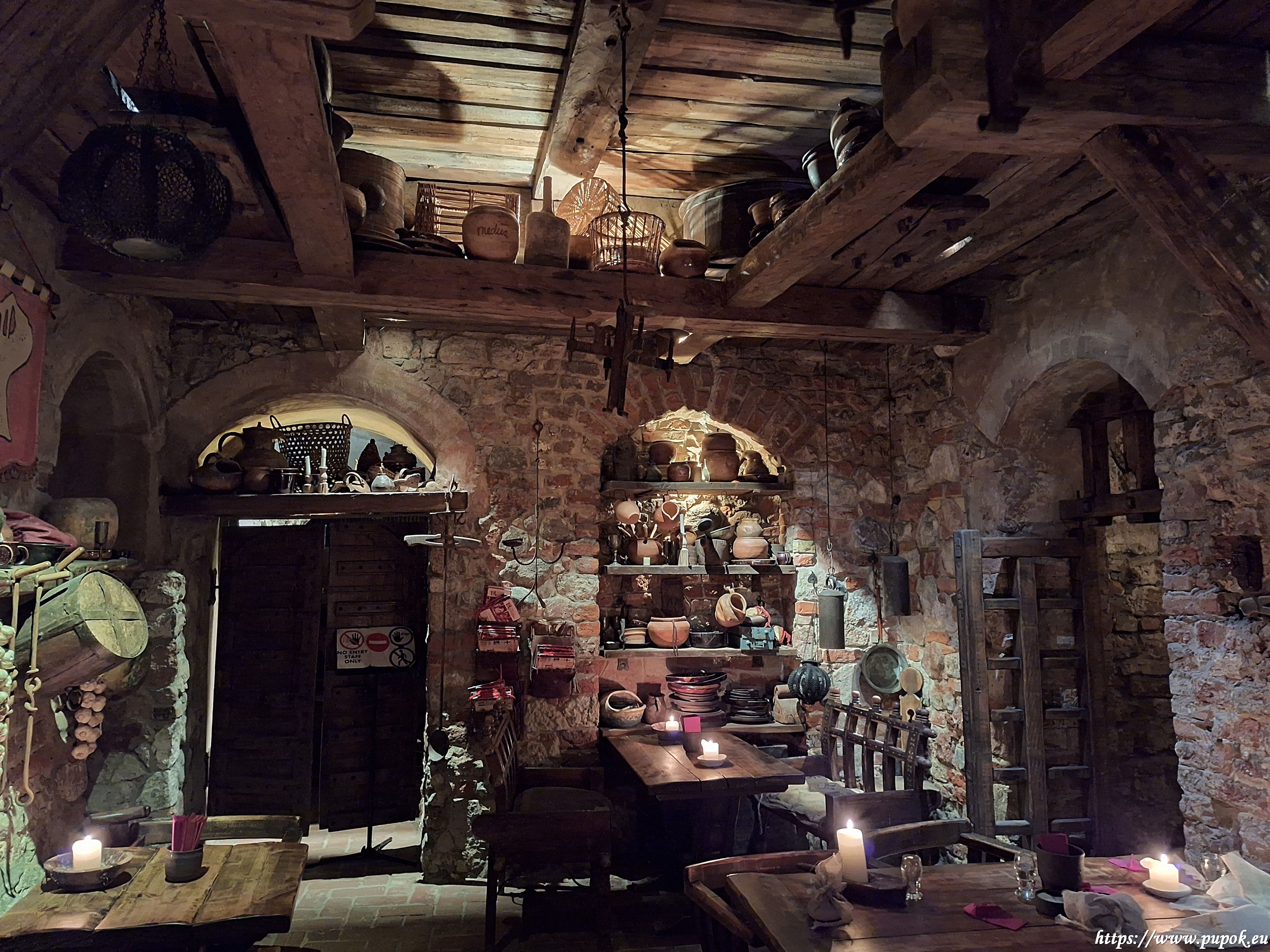 Короче: там темно и очень вкусно. Но не соглашайтесь ни в коем случае отгадывать загадки официанта! Иначе вы проиграете, и вам придется выпить много самогона, который они сами там же и гонят. Самогон отвратительный, мы утащили его домой и он до сих пор стоит у меня в баре без применения.