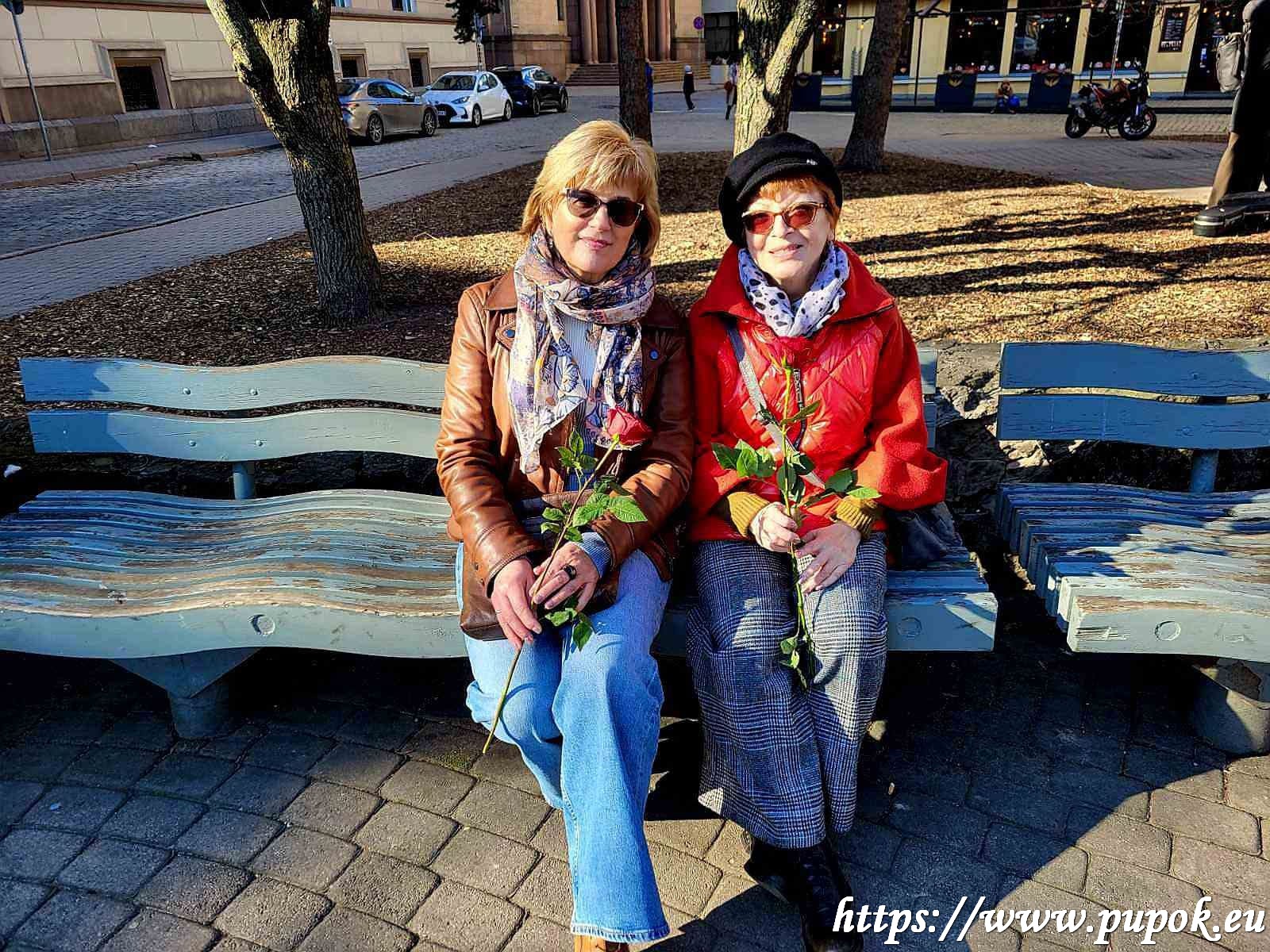 После «кошкиного дома» мы присели на лавочку и тут какие-то местные блогеры попросили нас поучаствовать во флешмобе (или это по другому называется), когда в кадре беседующей парочке мужчине незаметно передают цветок, и он типа неожиданно его дарит спутнице. Мы вчетвером сели на скамейку, образовав две пары (обычные гетеросексуальные пары, если что), один из парней прополз пробрался за скамейкой, передал нам по розочке, и мы подарили Майе и Свете по цветочку. К сожалению, координаты ребят мы не сообразили взять, так что, где можно посмотреть результат нашей актерской деятельности, нам неизвестно.