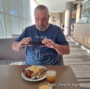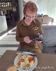 Утренняя еда. Завтрак, как обычно, скучный и рациональный. Взяли побольше, чтобы хватило на подольше, чтобы ехать домой без остановки на еду.